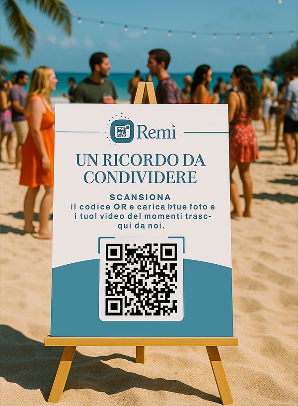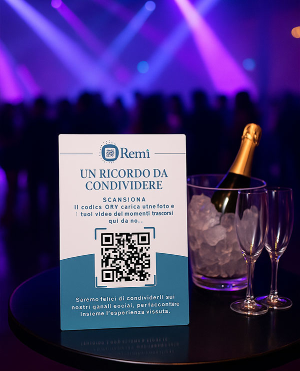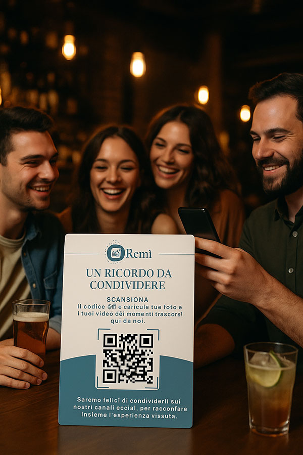 Con un semplice QR code, i tuoi ospiti possono caricare in tempo reale foto e video della loro esperienza nel tuo locale.